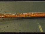 Wire after 6 hours in salt chamber, comparable to 300 days in adverse conditions. The copper wire displays serious effects of corrosion. The galvanized wire displays no symptoms of corrosion.